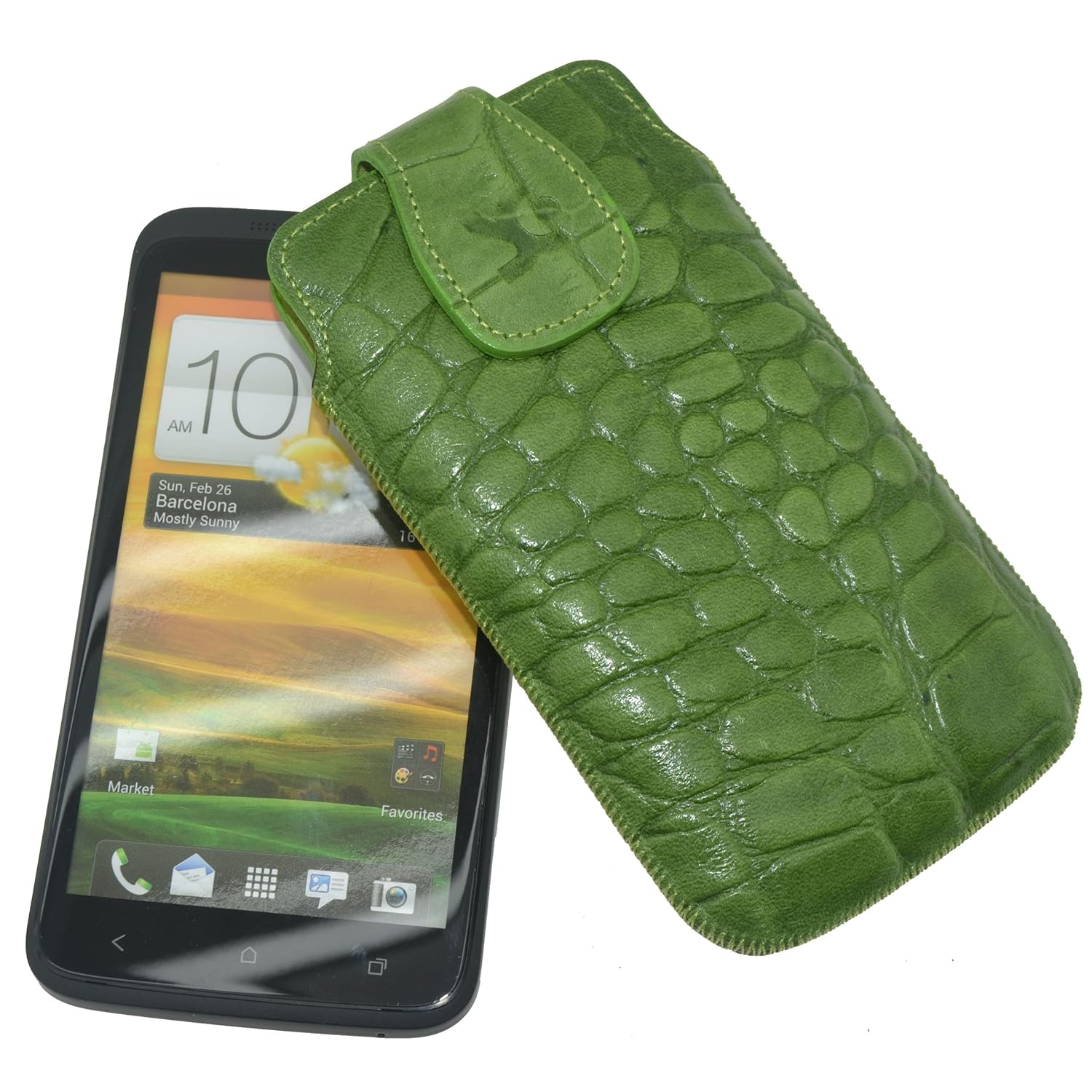 (×̯×) Suncase Ledertasche (Magnetverschluss) für HTC One X croco-grün